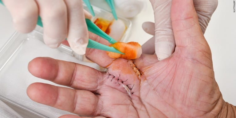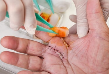 Wound care includes wound assessment, cleaning & debridement, skin protection, dressing, and follow-up to promote healing, prevent infection, and minimize scarring.