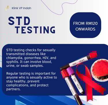STD testing checks for sexually transmitted infections like hepatitis, HIV, chlamydia, gonorrhea, and syphilis.