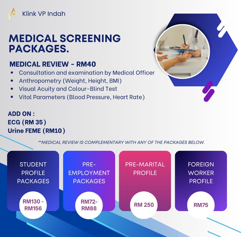 Medical screenings are health assessments required for specific events, such as entering educational institutions, marriage, or starting a new job to ensure an individual fits that role.